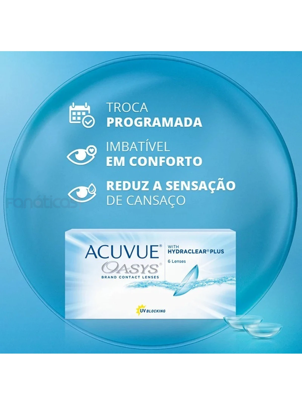 Alem de todas estas qualidades, as lentes Acuvue Oasys têm proteção UVA e UVB, protegendo seus olhos dos raios ultravioletas.