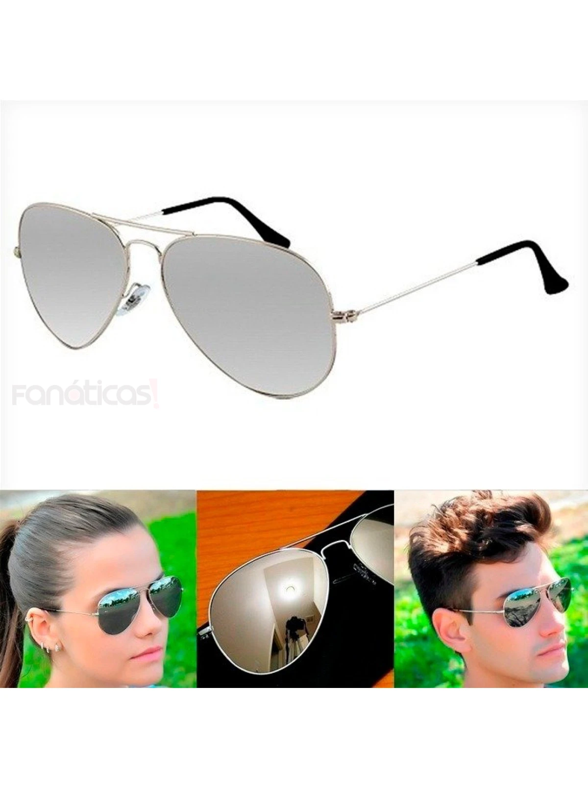 Todo em metal, o modelo transmite sofisticação, e com suas lentes verde escura traz a modernidade. As peças em metal tem por características serem leves e confortáveis, e o Aviador não poderia ser diferente. O encaixe desta peça no rosto do usuário é perfeito, tanto do sexo masculino quanto feminino.